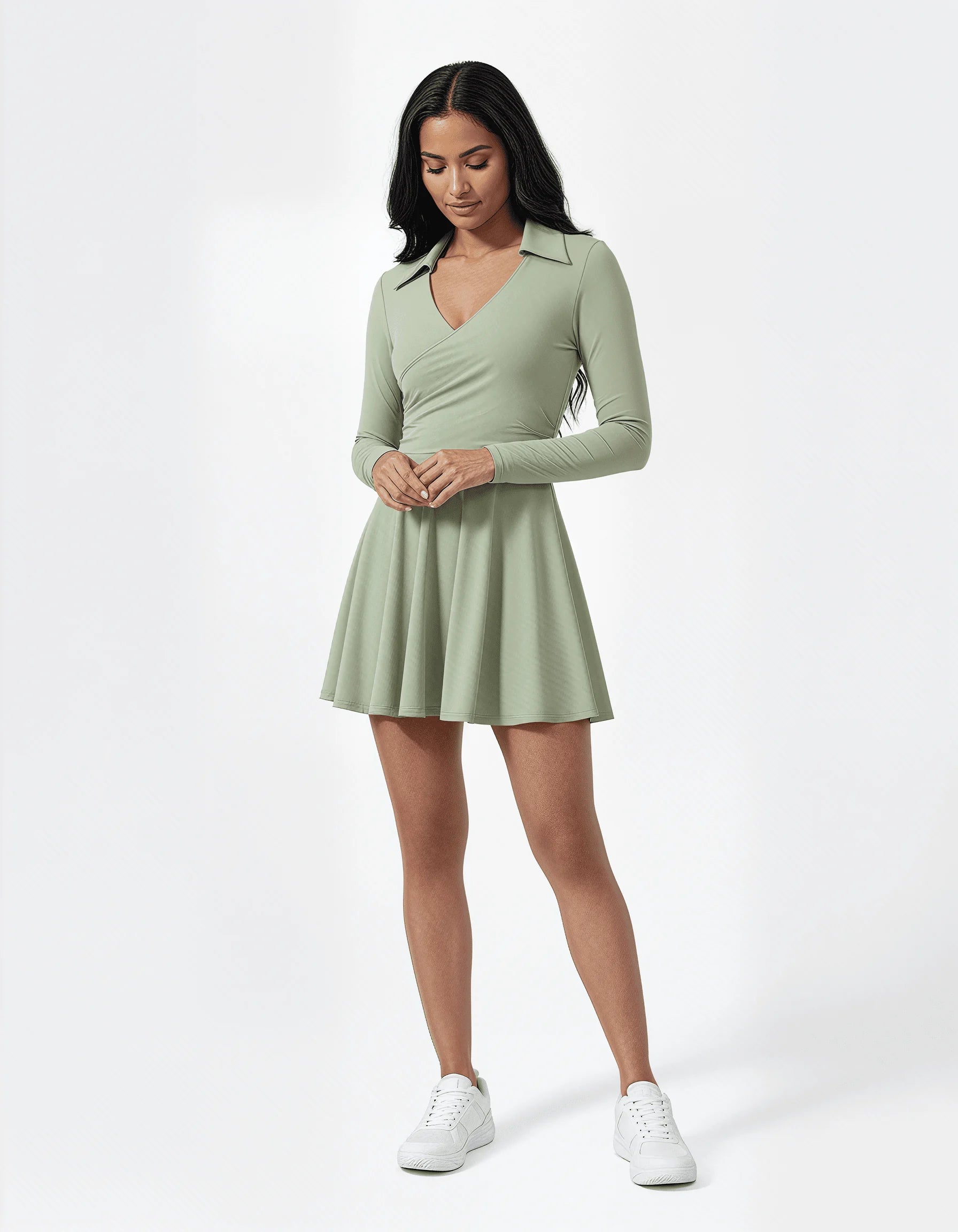 • Long sleeve polo-style athletic dress